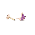Jemná piercingová labreta z růžového 14 karátového zlata s vnitřním závitem, která je zakončena třemi Rodolity o celkové váze 0.112 ct. Je vhodná pro typ piercingu helix, tragus, lobe, conch a flat. Šperk lze použít pro první aplikaci piercingu.
