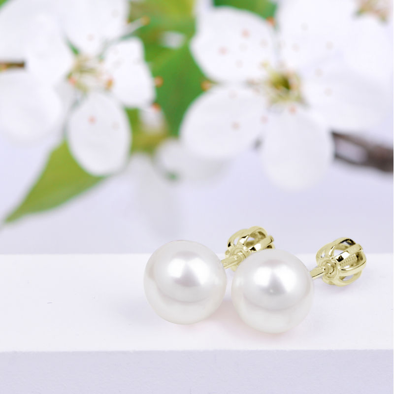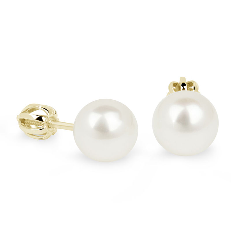 Klasické náušnice z 14 karátového žltého zlata s guľatou bielou sladkovodné perlou vysokého lesku o rozmere 8 mm. Náušnice majú zapínanie typu balónik. V kategórii perlové náušnice nájdete aj ďalšie rozmery 3 - 9 mm. Šperk je uložený v luxusnej darčekovej krabičke.